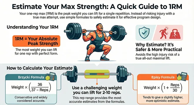 Disclaimer: This is an estimate only. This is not a substitute for professional coaching or supervised testing. Consult a trainer or physician before pushing limits, especially if new to lifting or recovering from injury.